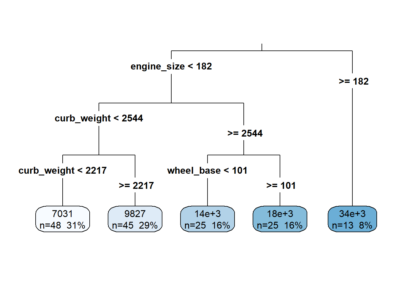 engine_size < 105.5 to the left, improve=0.3843303, (0 missing)