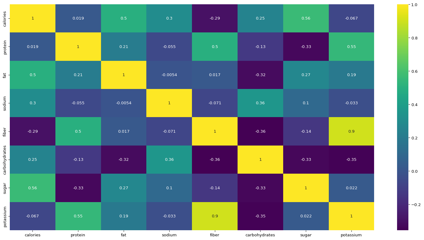 # Check the correlation between the variablesplt.figure(figsize=(20,10))sns.heatmap(df.iloc[:,:-1].corr(),annot=True,cmap="viridis")plt.show()