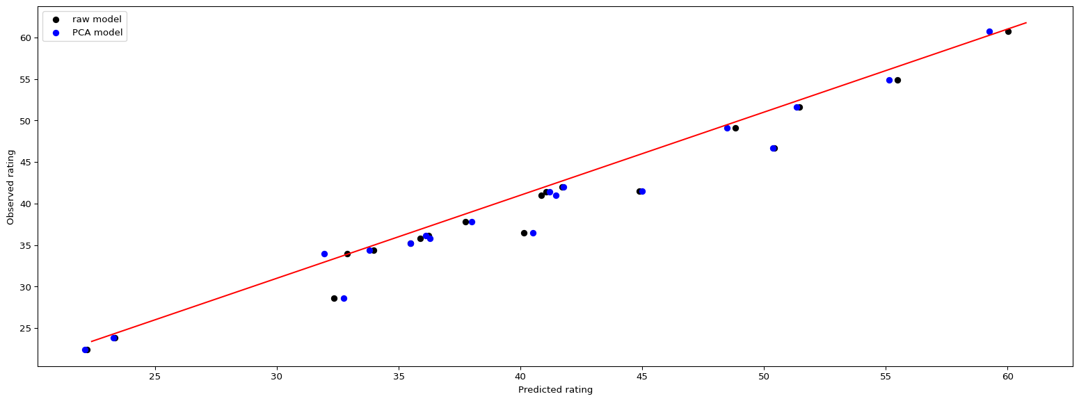 # Now run the OLS regression model on the first five principal components# Fit the OLS regressionresult_pca = smf.ols("rating ~ PC1 + PC2 + PC3 + PC4 + PC5 + PC8", data = data_train_pca).fit()# check the summaryresult_pca.summary()