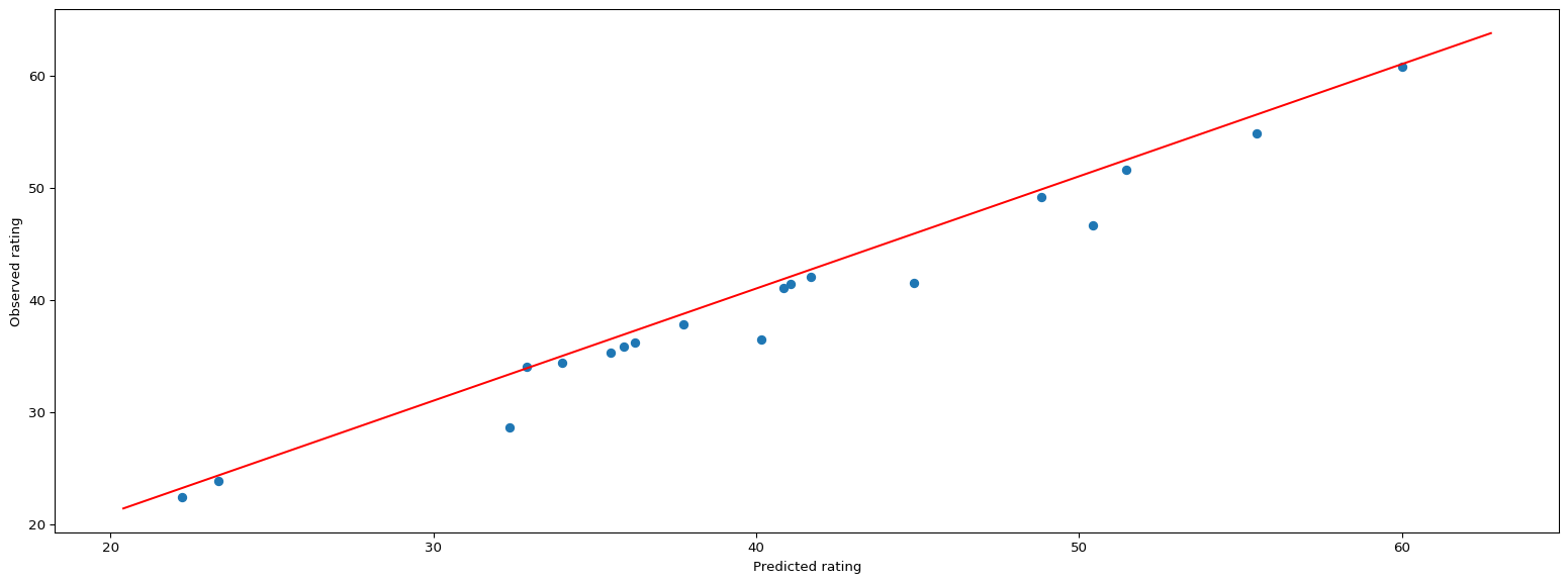 from sklearn.metrics import mean_absolute_error,mean_squared_errorprint("Mean Absolute Error:",round(mean_absolute_error(data_test["rating"],predictions_pca),2))print("Root Mean Squared Error:",round((mean_squared_error(data_test["rating"],predictions_pca))**0.5,2))