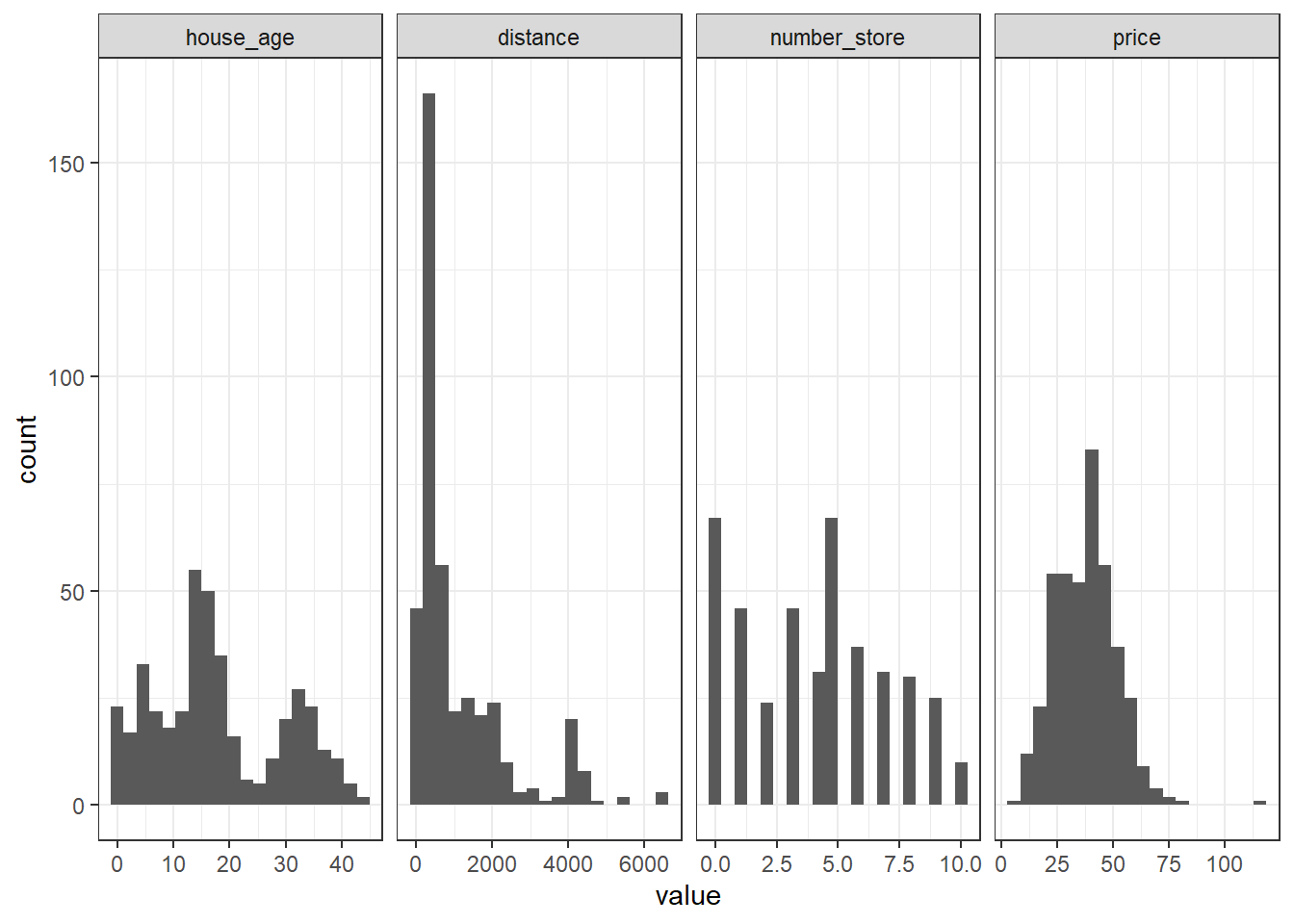 colnames(data0) <- c("ID", "date", "house_age", "distance", "number_store", "latitude", "longitude", "price")