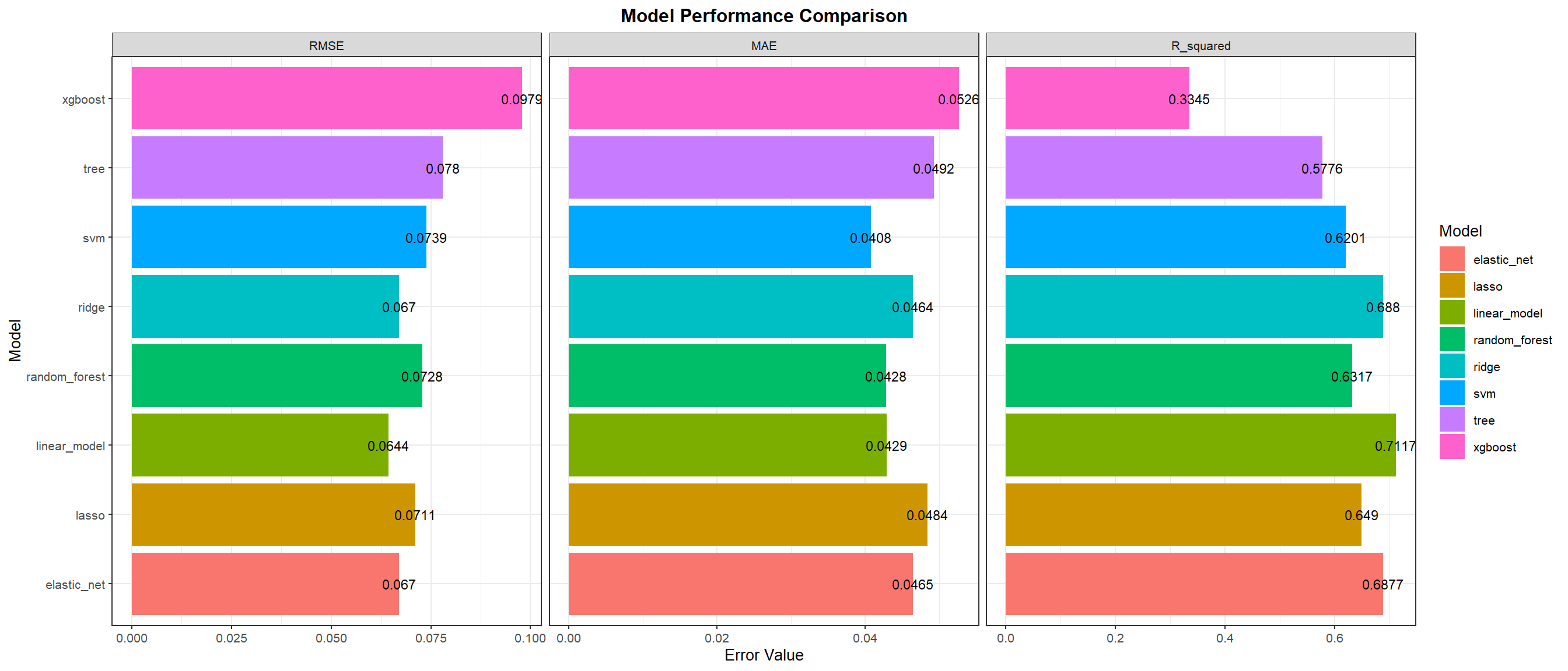 # Prediction on the testing datasety_pred_en <-predict(model_en, s = best_lambda_en,newx=as.matrix(data_test[,-1]))# Data frame for observed vs predicteddf_pred_en <-data.frame(predicted =as.vector(y_pred_en), observed = data_test$actual_productivity)df_pred_en$model <-"elastic_net"# Evaluation metricsrmse_en <-sqrt(mean((data_test$actual_productivity-y_pred_en)^2))mae_en <-mean(abs(data_test$actual_productivity-y_pred_en))r2_en <-1-sum((data_test$actual_productivity - y_pred_en)^2) /sum((data_test$actual_productivity -mean(data_test$actual_productivity))^2)